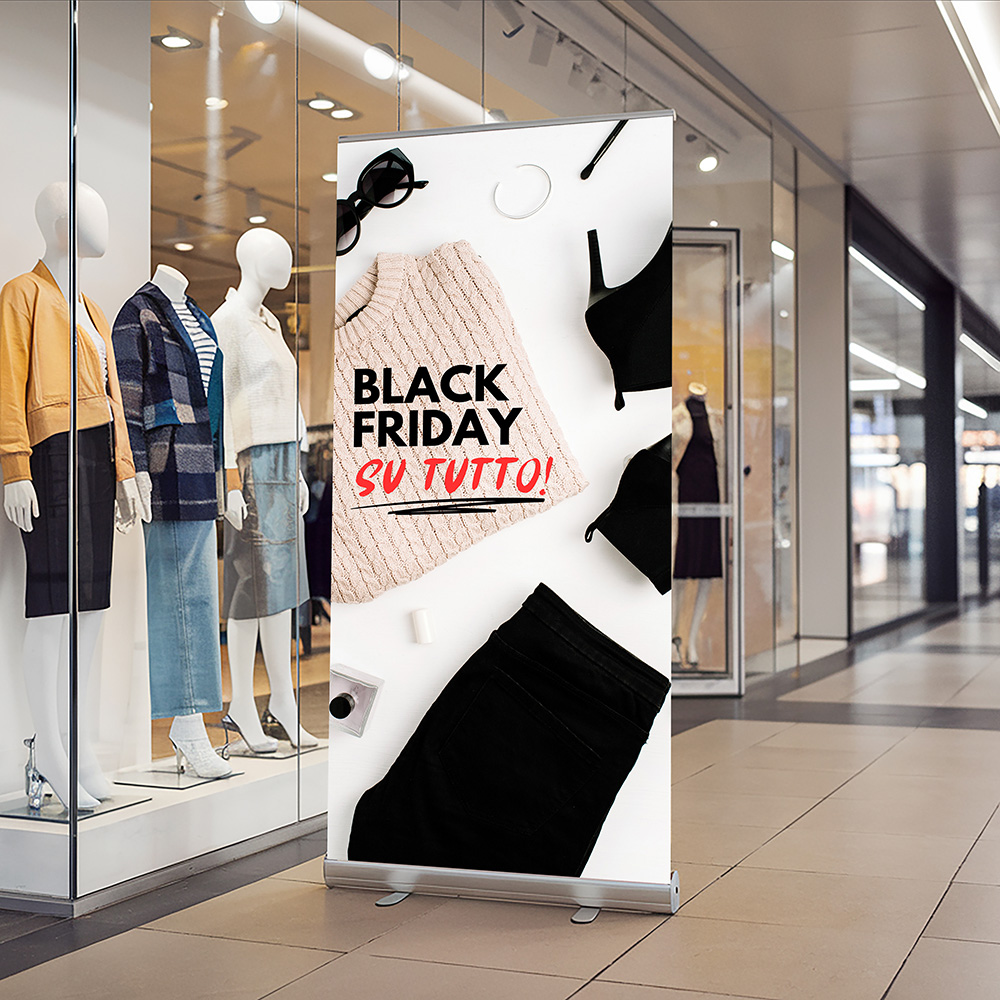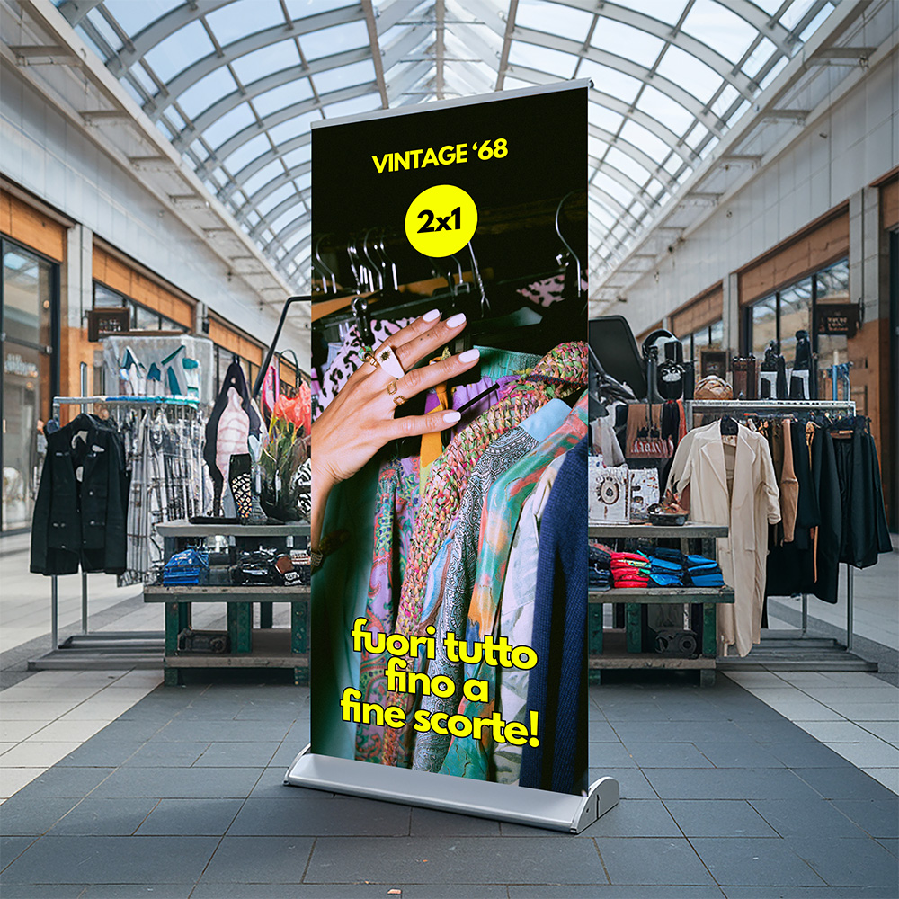 I Roll Up pubblicitari sono ormai un must. Li trovi ovunque: fiere, eventi, showroom e sempre più spesso anche nei negozi, soprattutto durante i saldi. E non è un caso.