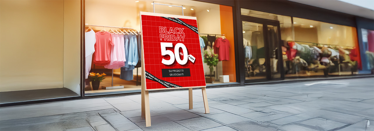 Vediamo insieme come puoi valorizzare il tuo punto vendita durante il Black Friday con strumenti pratici, efficaci e facili da gestire.